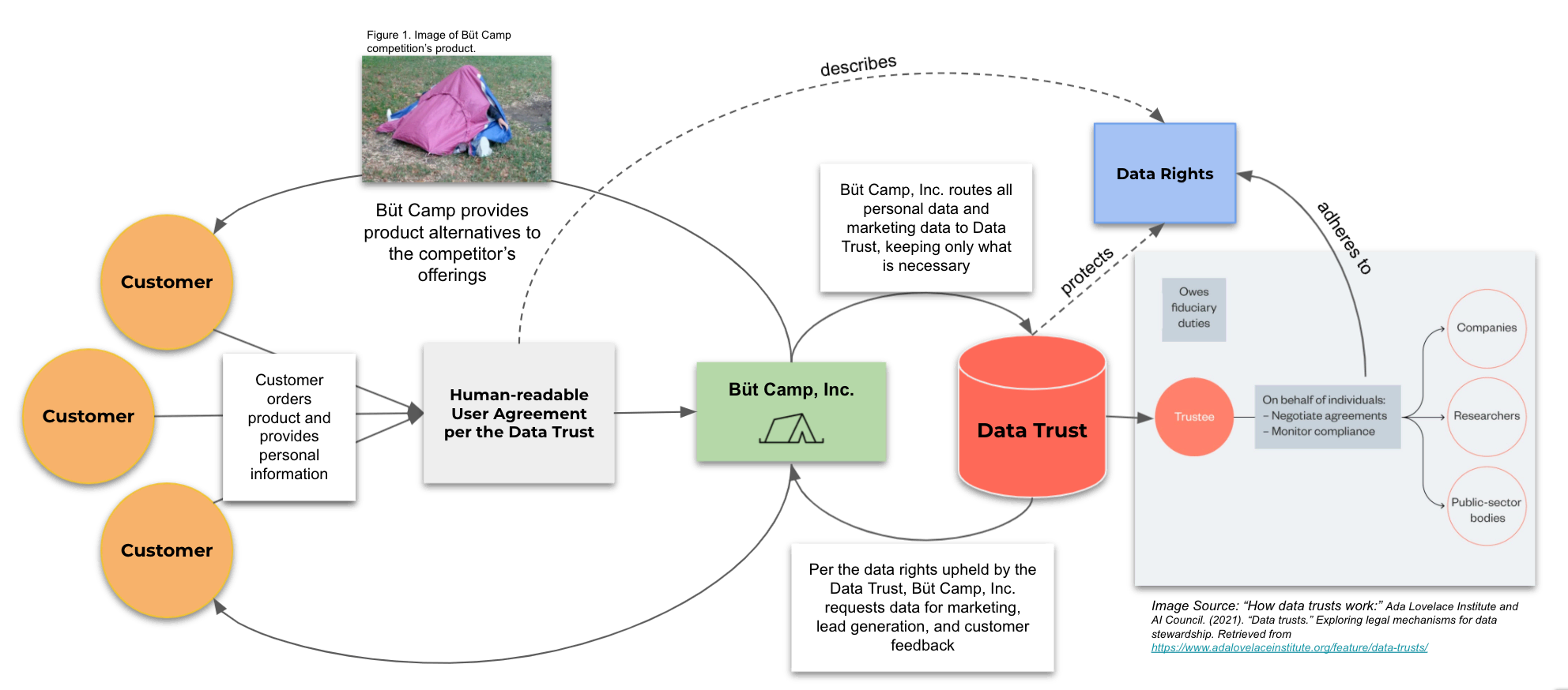 We believe that businesses should have clear, transparent standards on how they will use customer data that is human-readable. Büt Camp Inc. wants a solution that allows our customer data to benefit the company, researchers, and other companies through ethical data sharing.